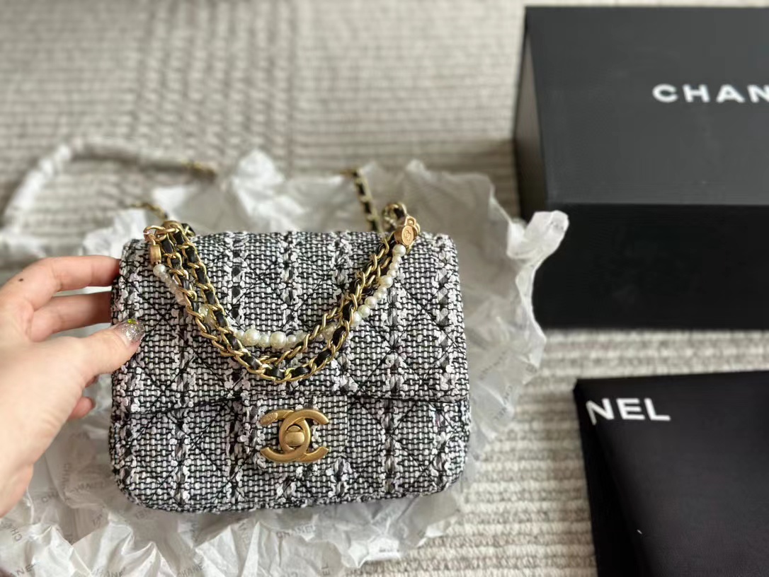 CHANE1 ウールパールチェーンバッグ【 50%割引+送料無料】