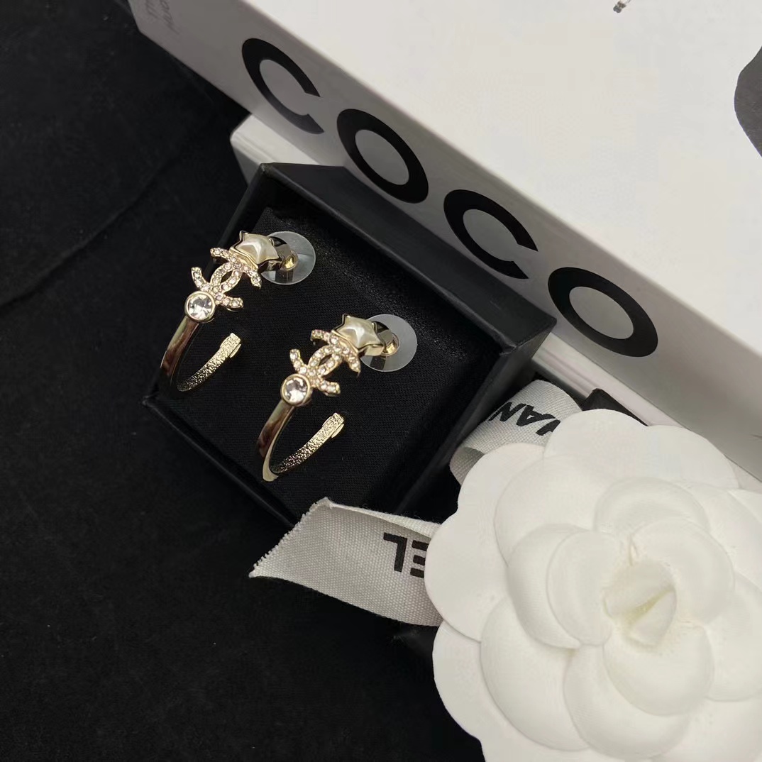 CHANE1 フープ ホロー ラインストーン ダブルC イヤリング【 50%割引+送料無料】