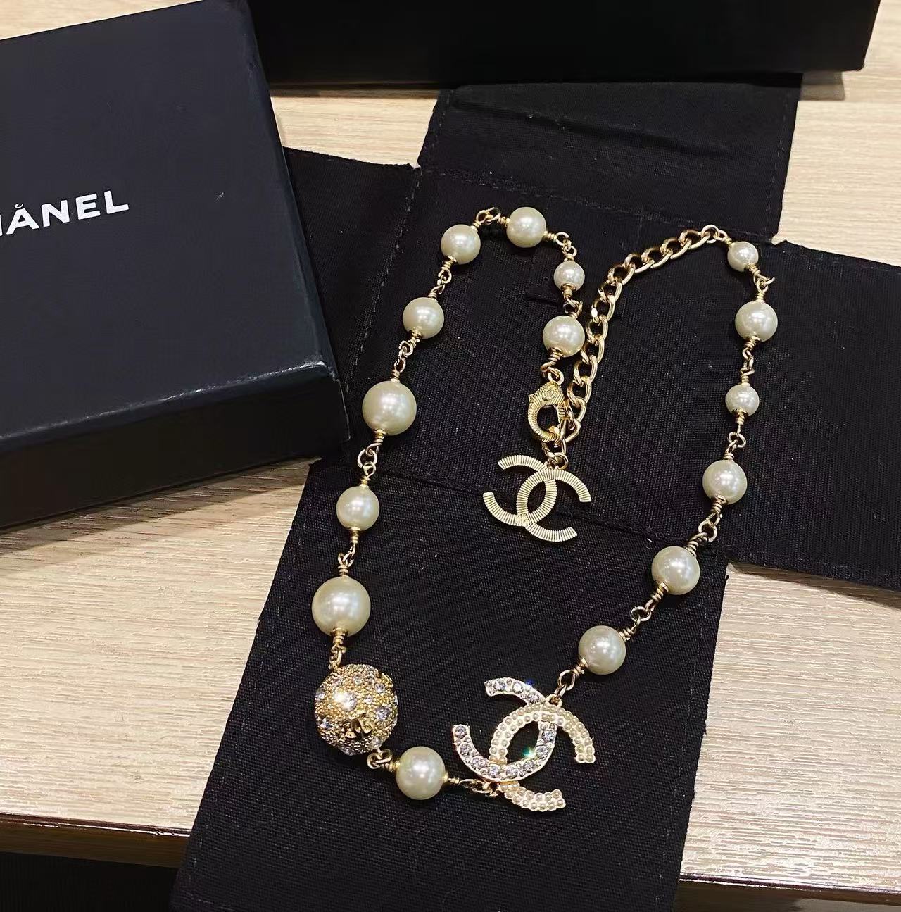 CHANE1 ダブルC ゴールドボールパール セーターネックレス