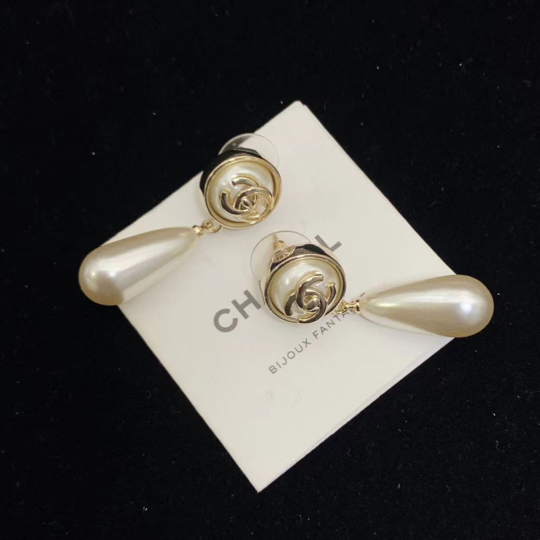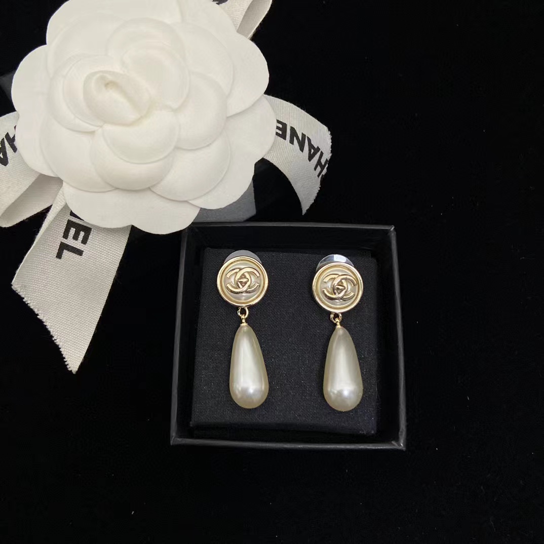 CHANE1 ラウンド ダブル C パール ペンダント イヤリング