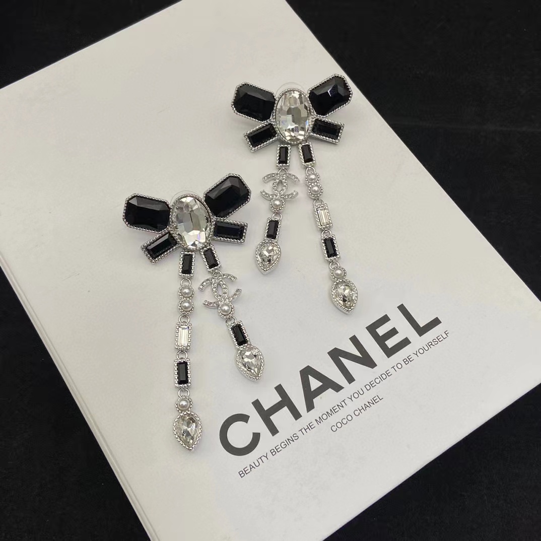 CHANE1 黒と白のダイヤモンド ボウ イヤリング