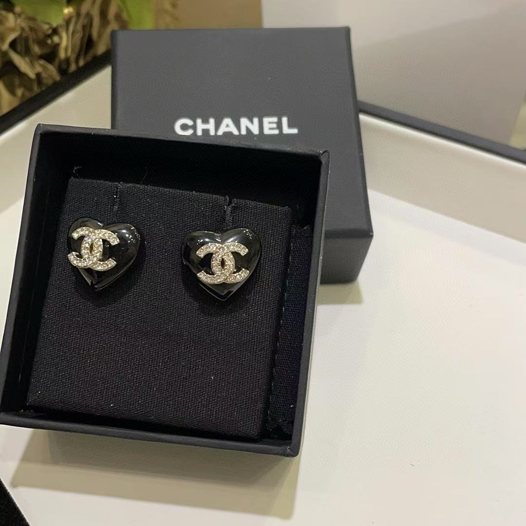 CHANE1 ブラックピーチハートダブルCイヤリング【 50%割引+送料無料】