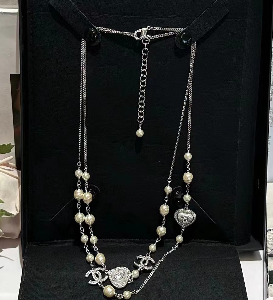 CHANE1 ハートセット ダイヤモンド パール セーター チェーン