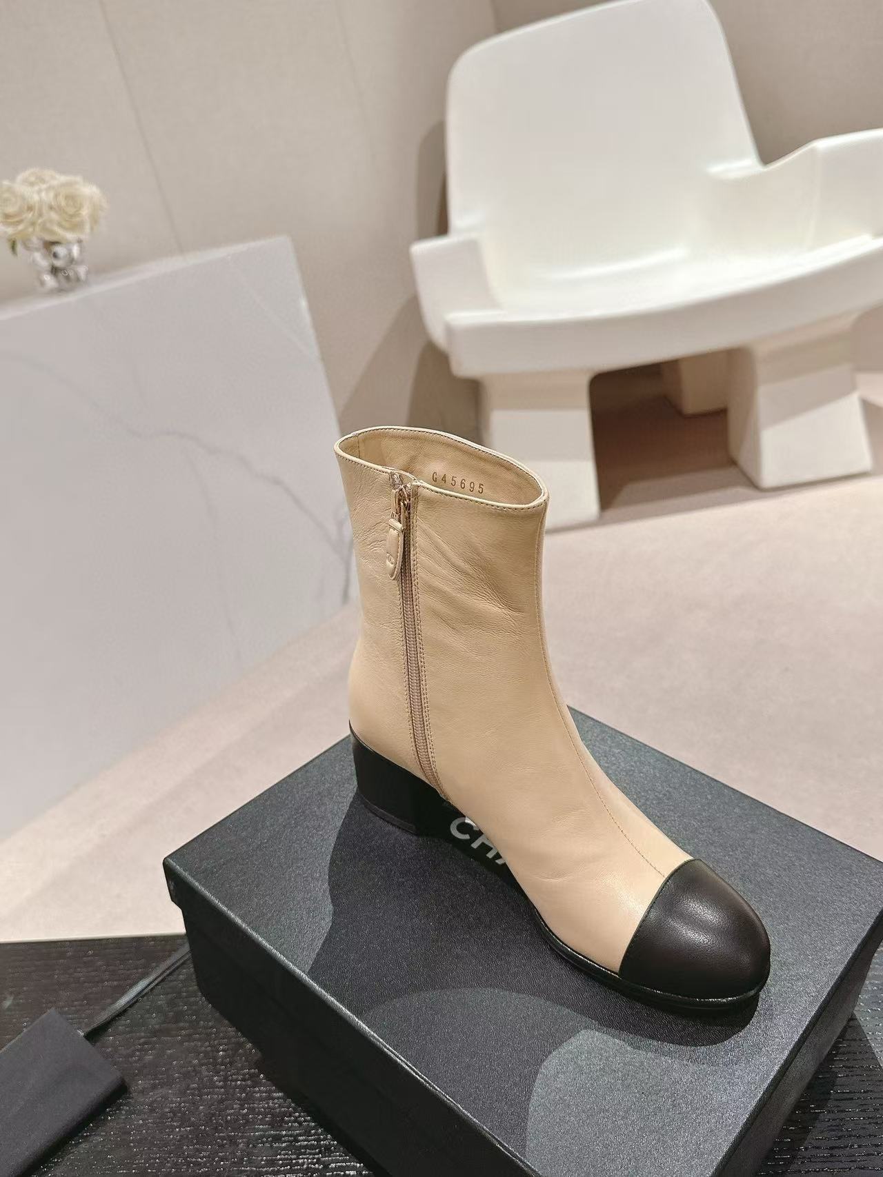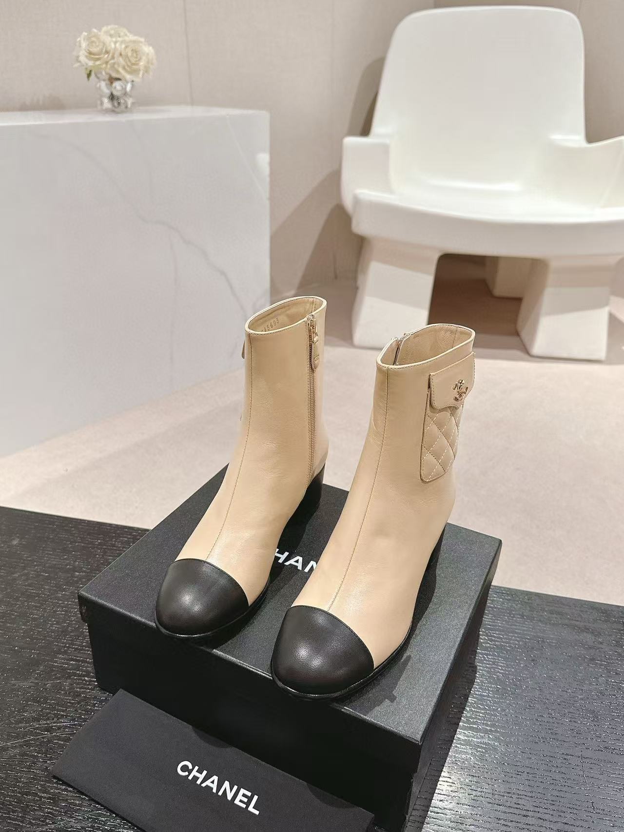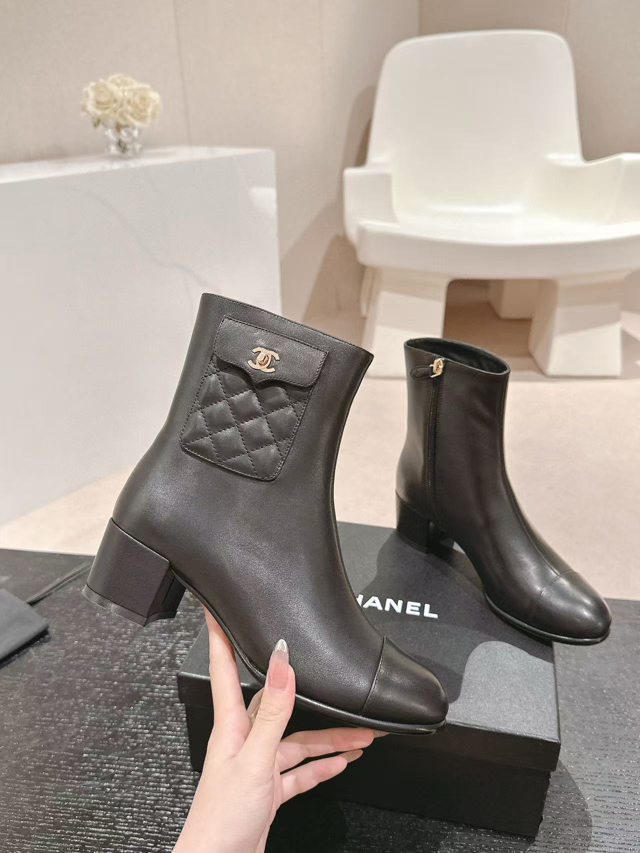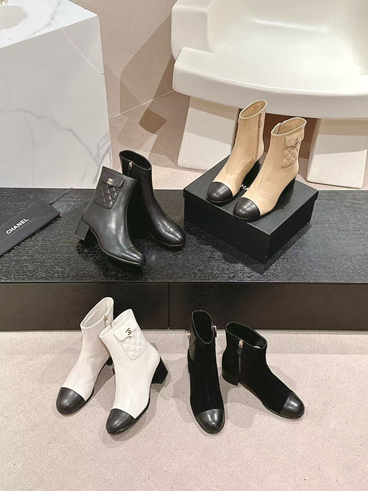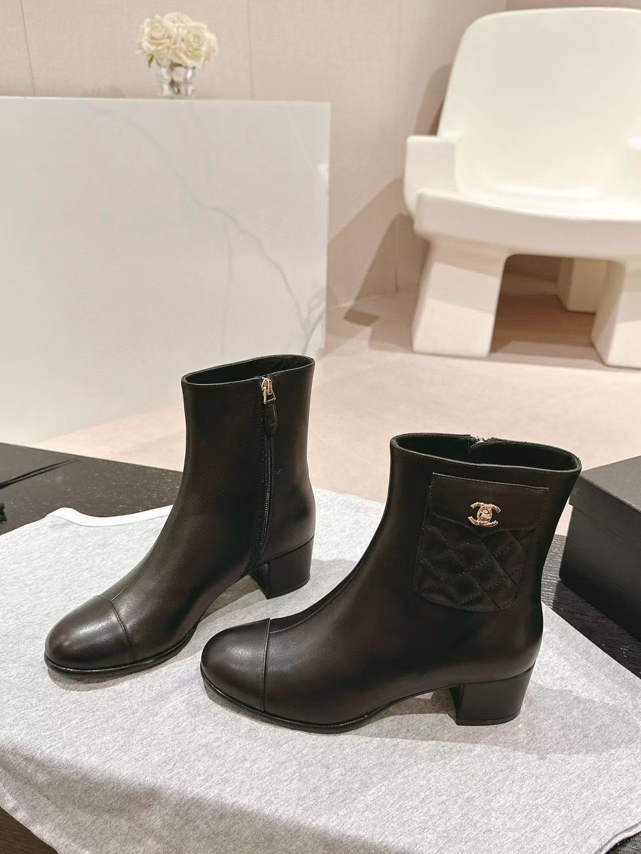 CHANE1 高品質 24B 牛革ローヒールブーツ【50%割引+送料無料】