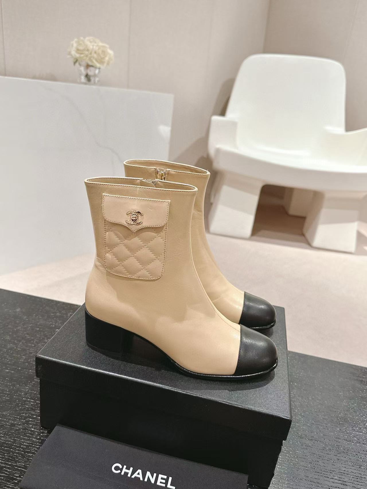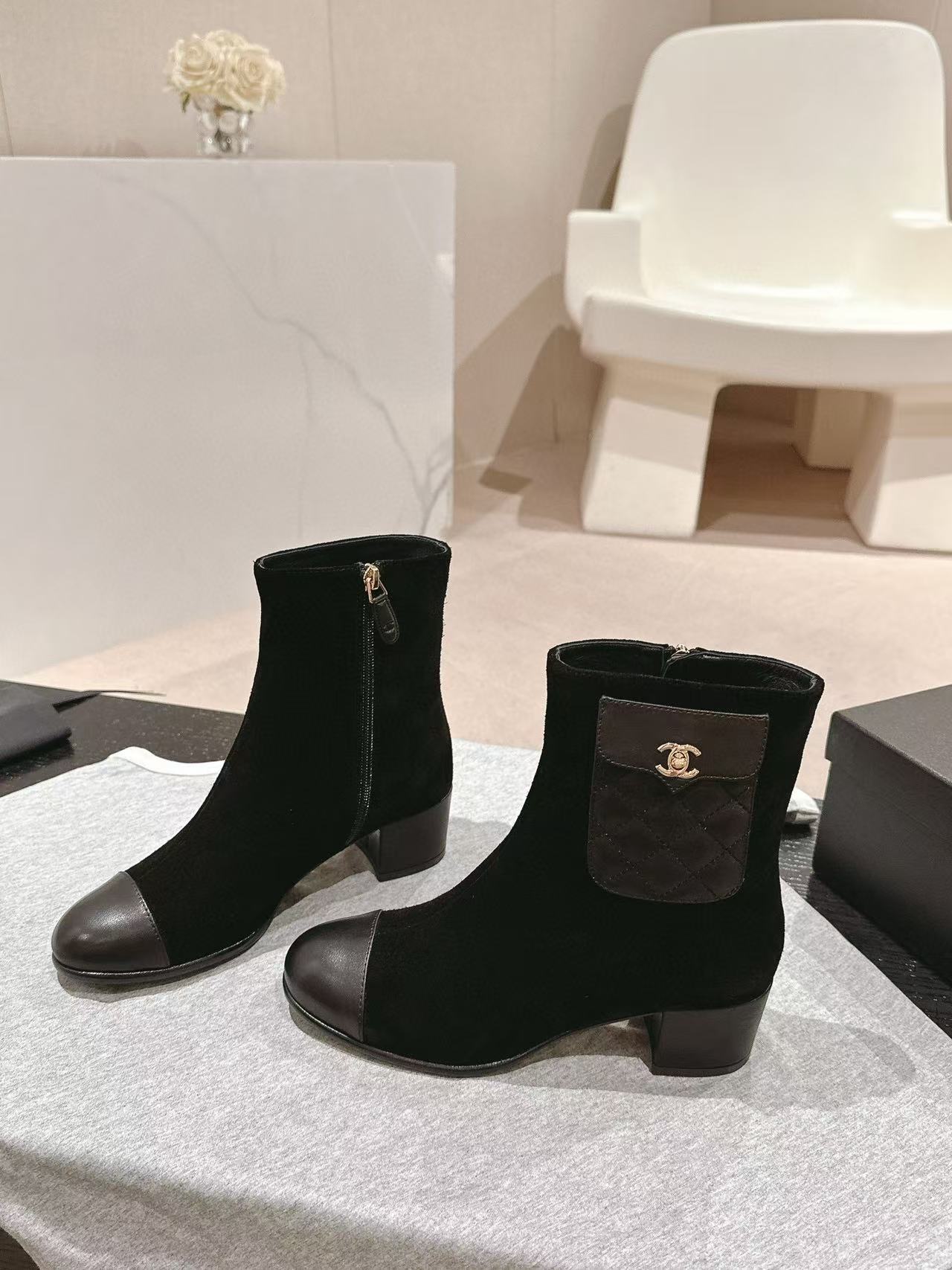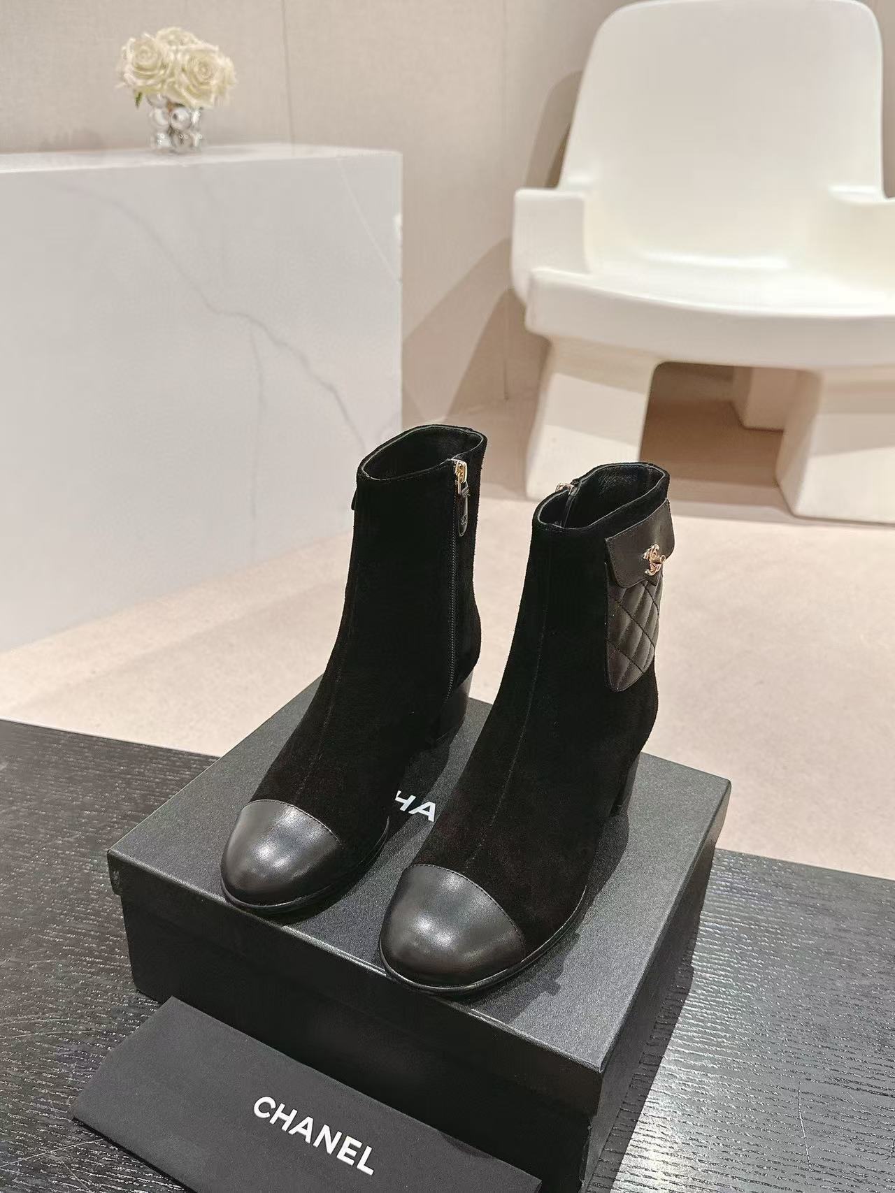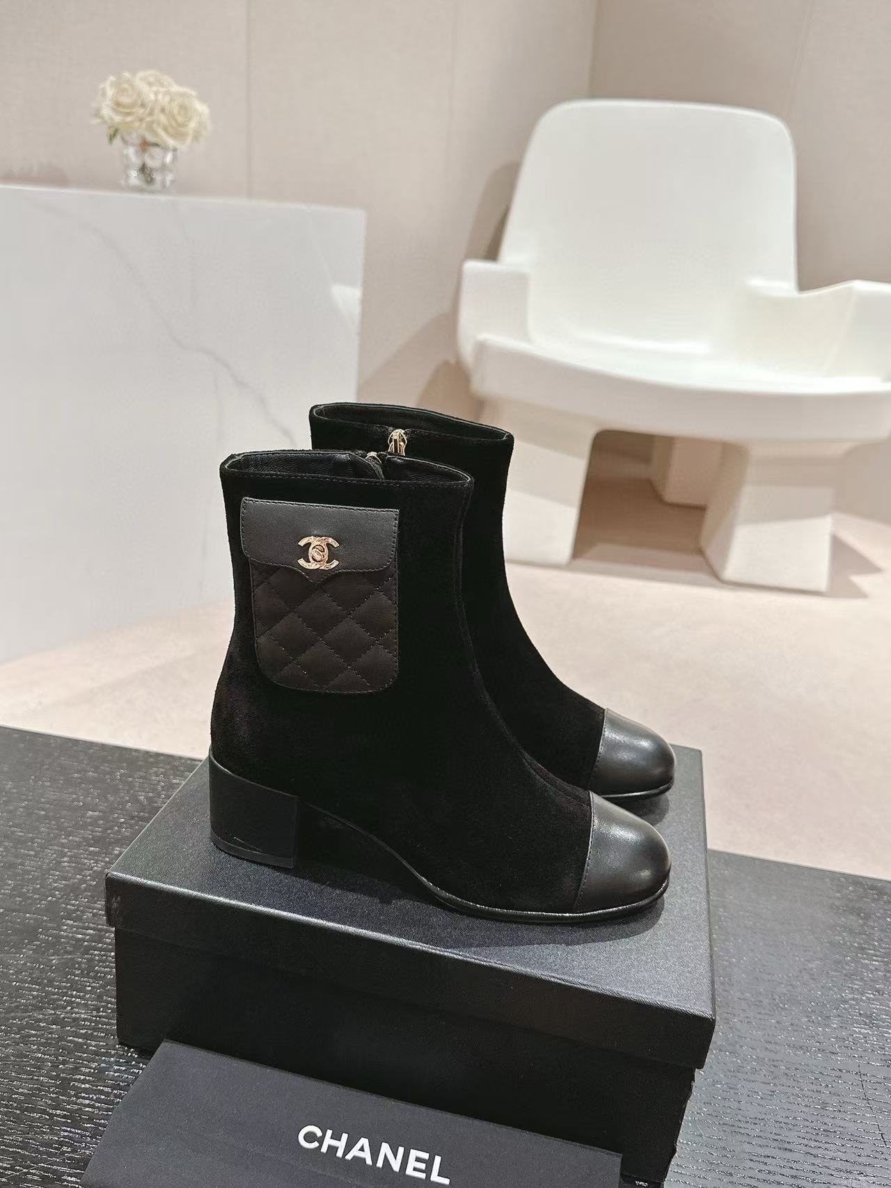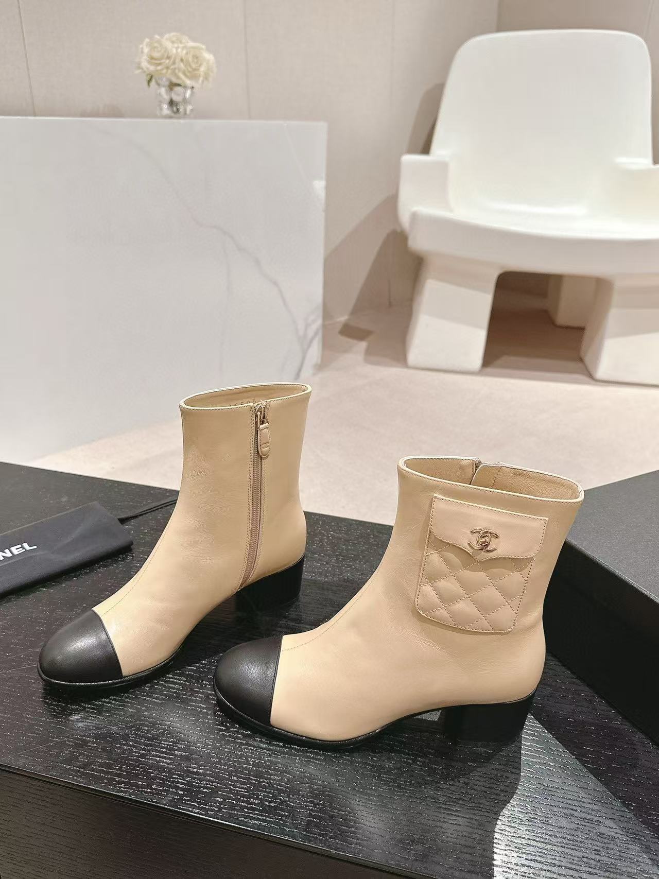 CHANE1 高品質 24B 牛革ローヒールブーツ【50%割引+送料無料】