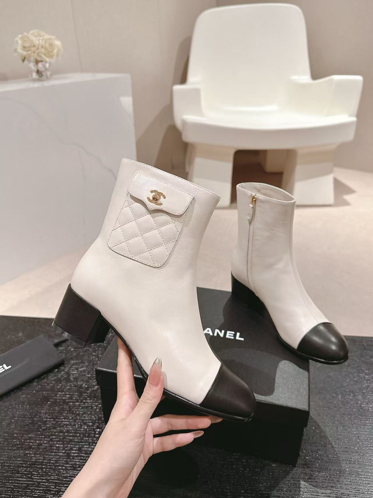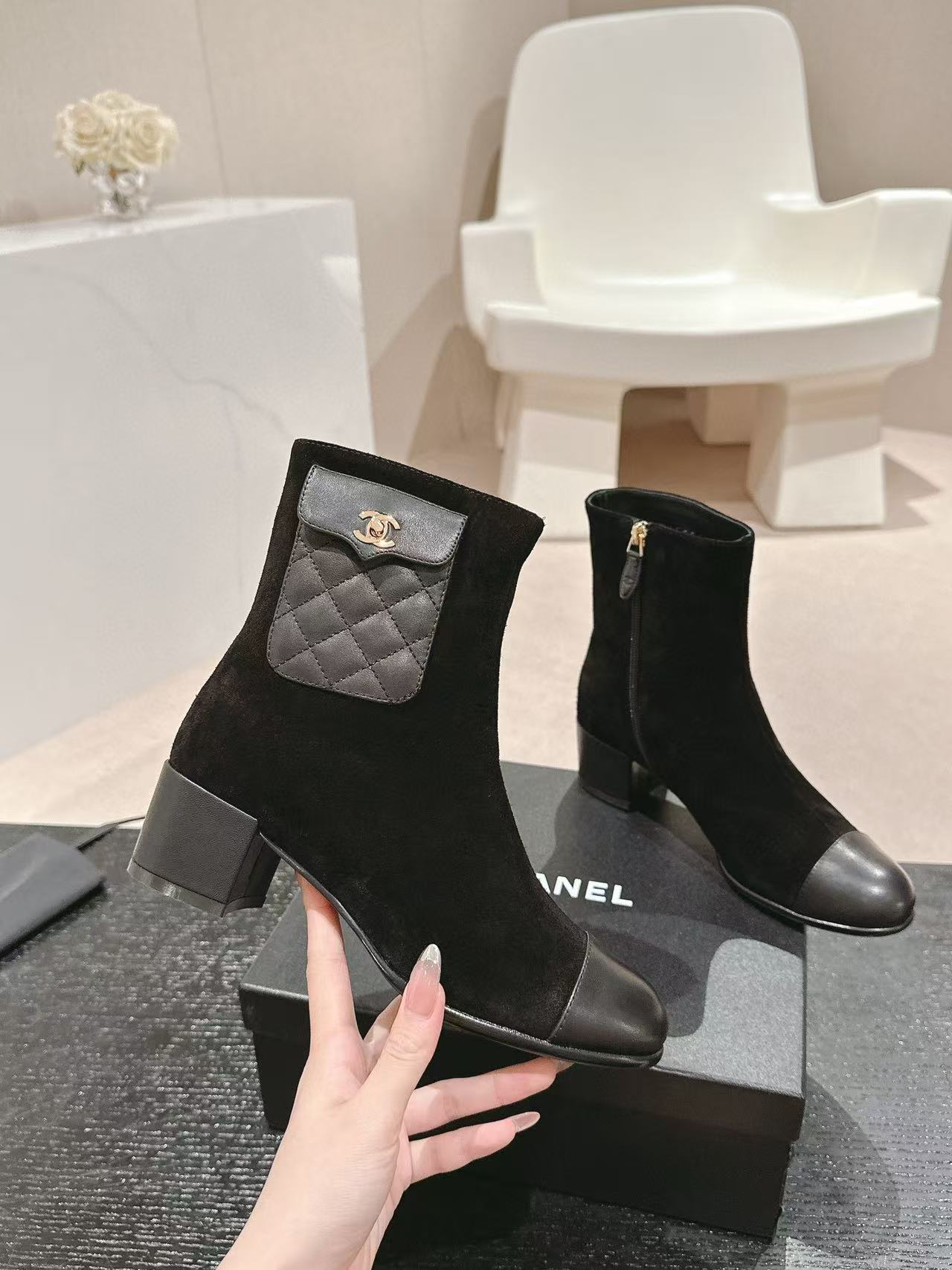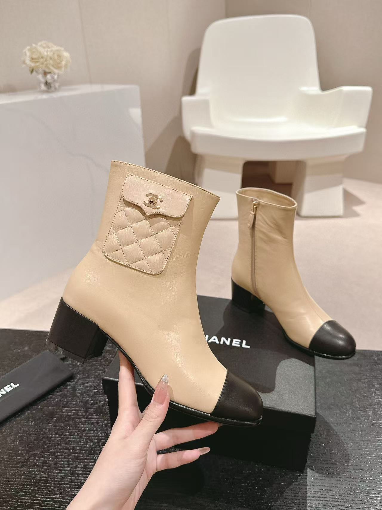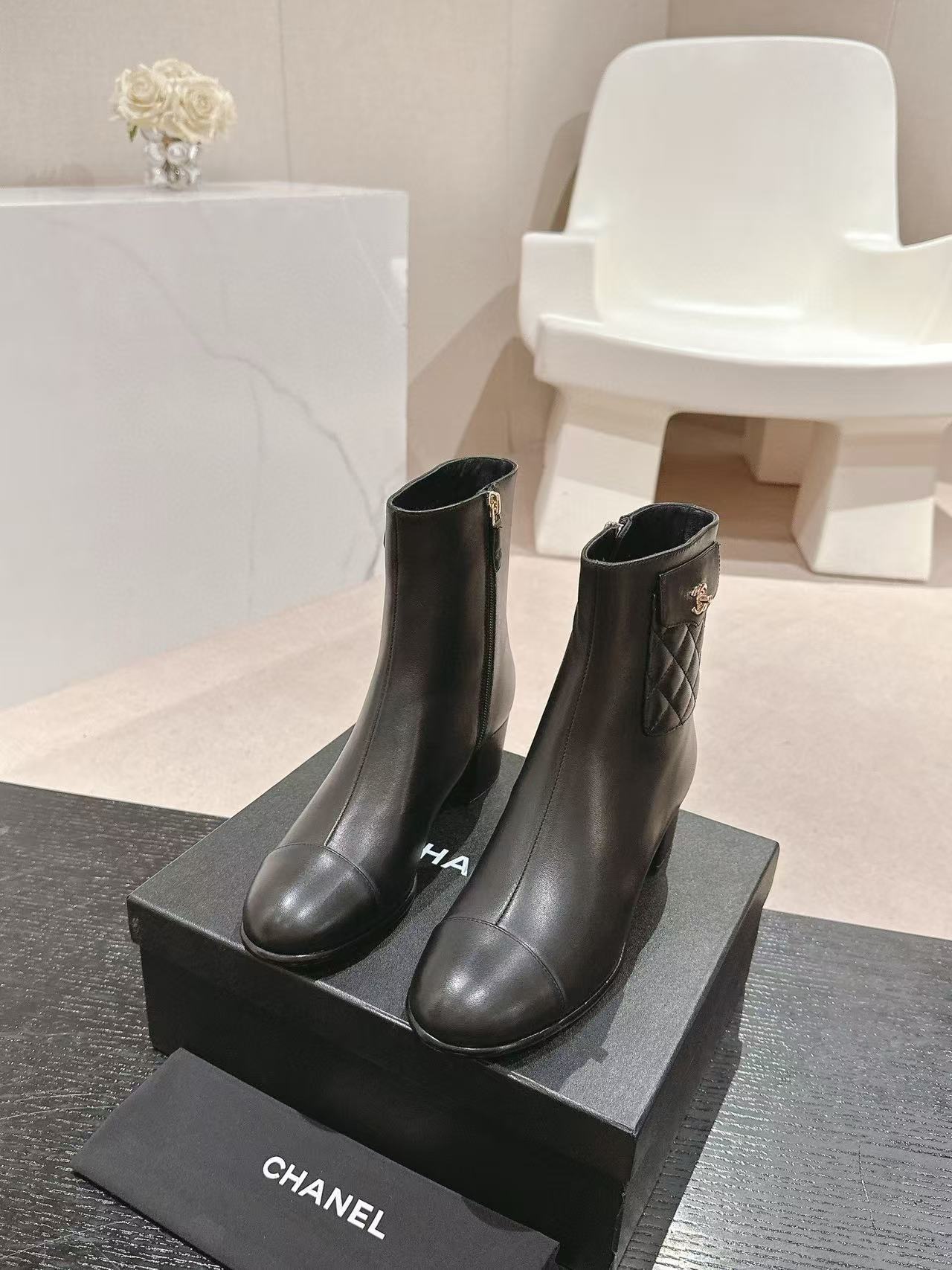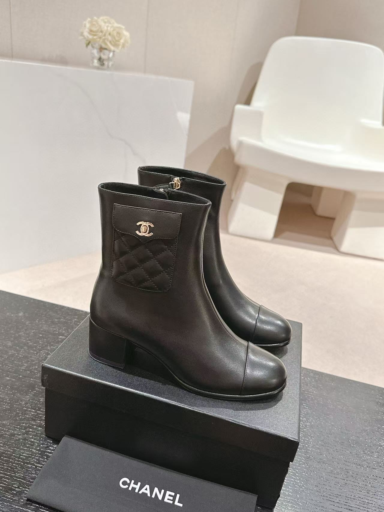 CHANE1 高品質 24B 牛革ローヒールブーツ【50%割引+送料無料】