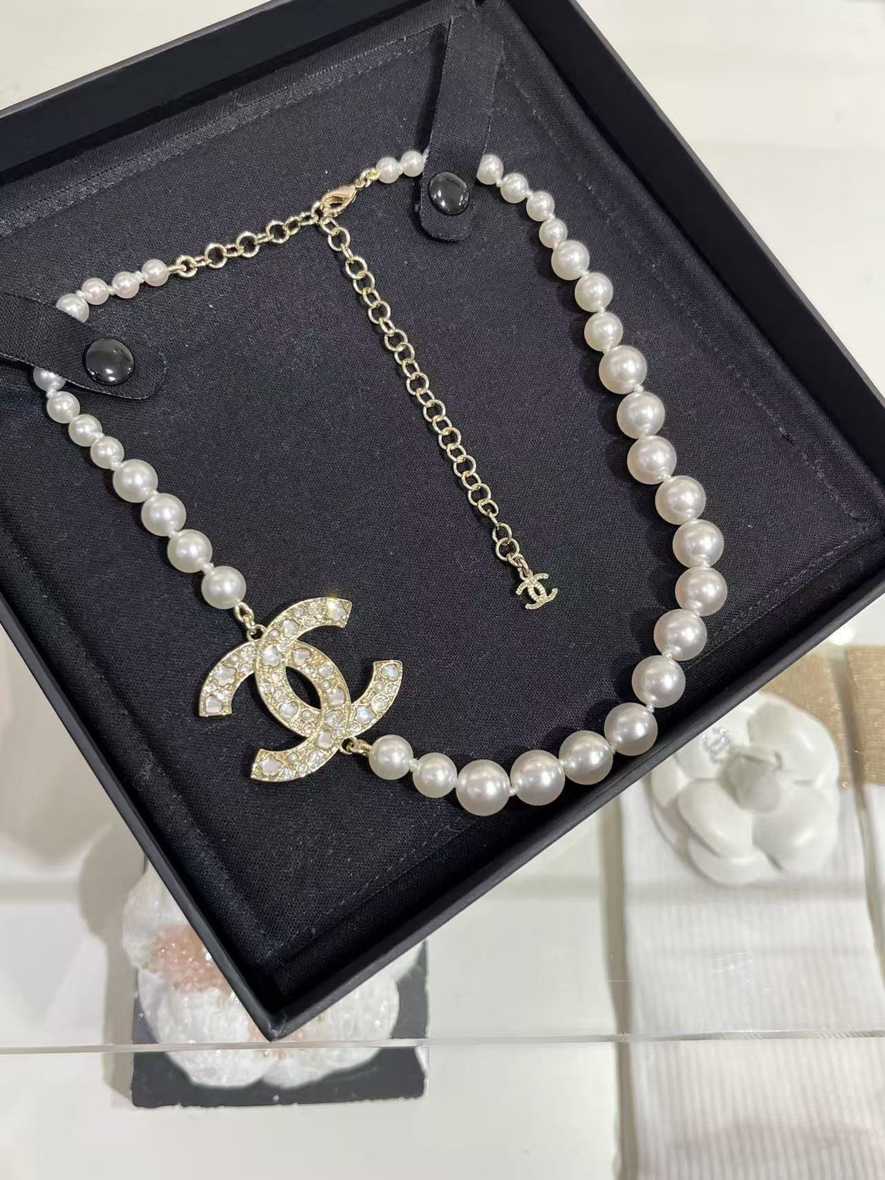 CHANE1 ダブルCパールネックレス【50%割引+送料無料】