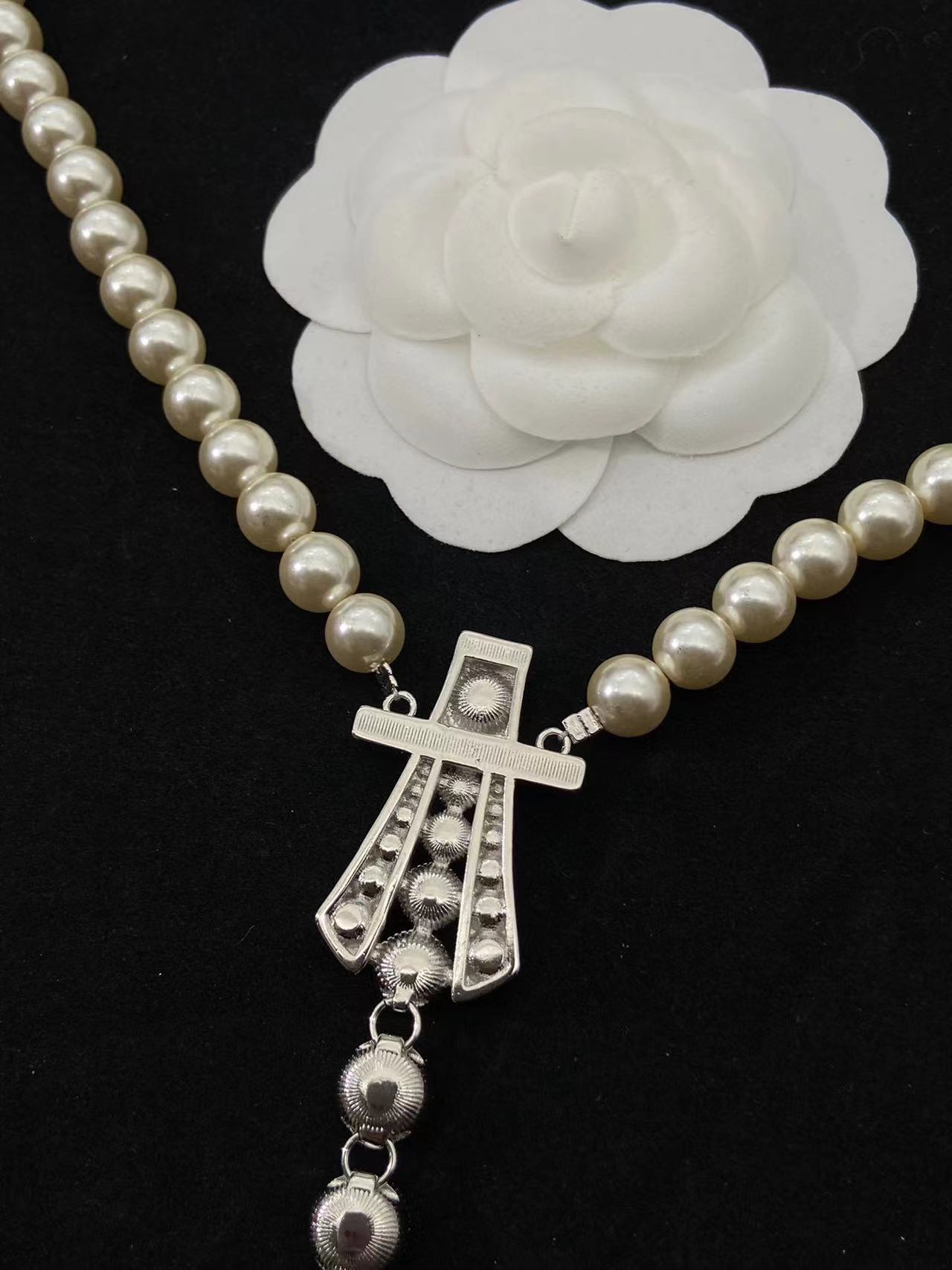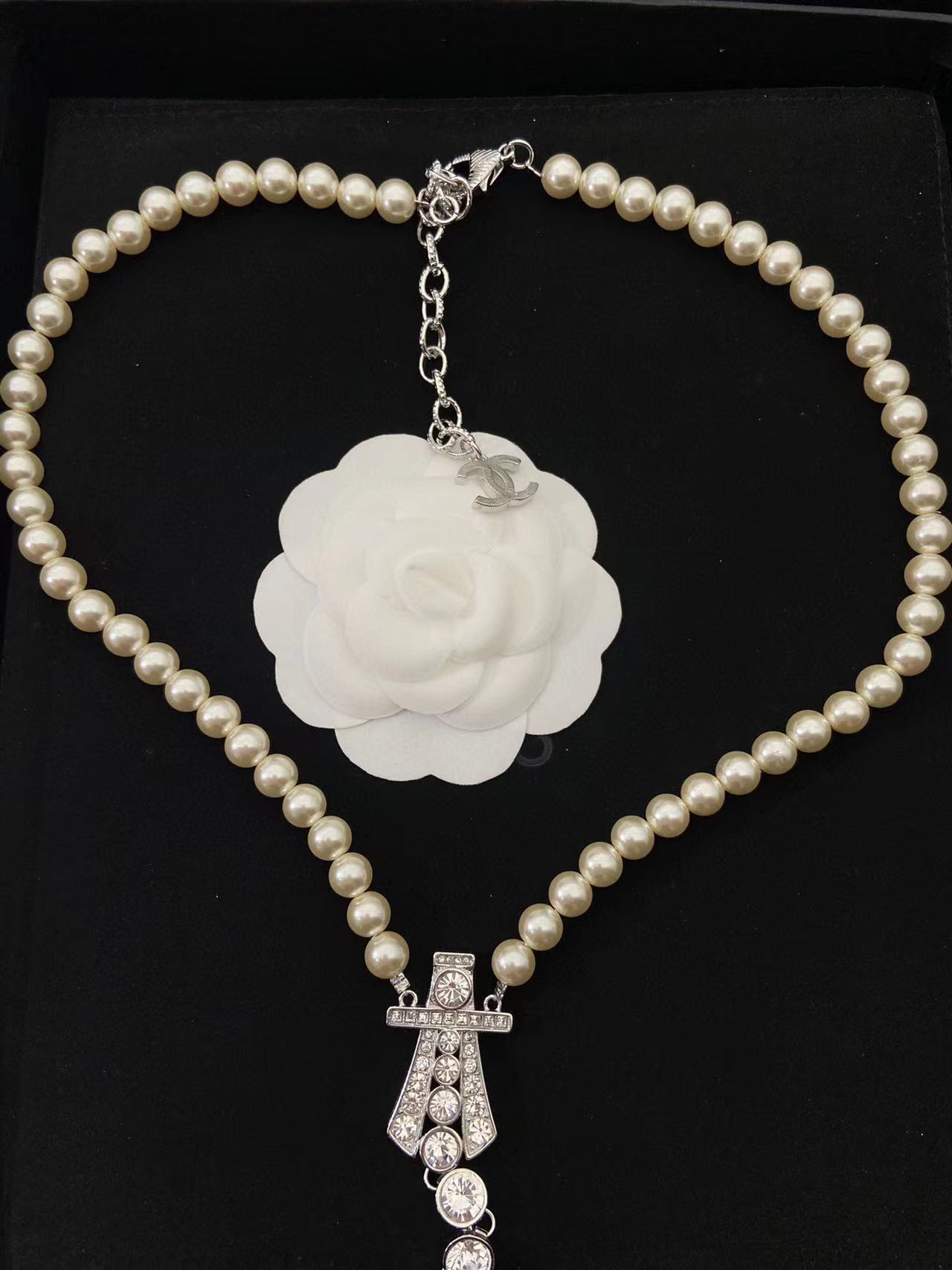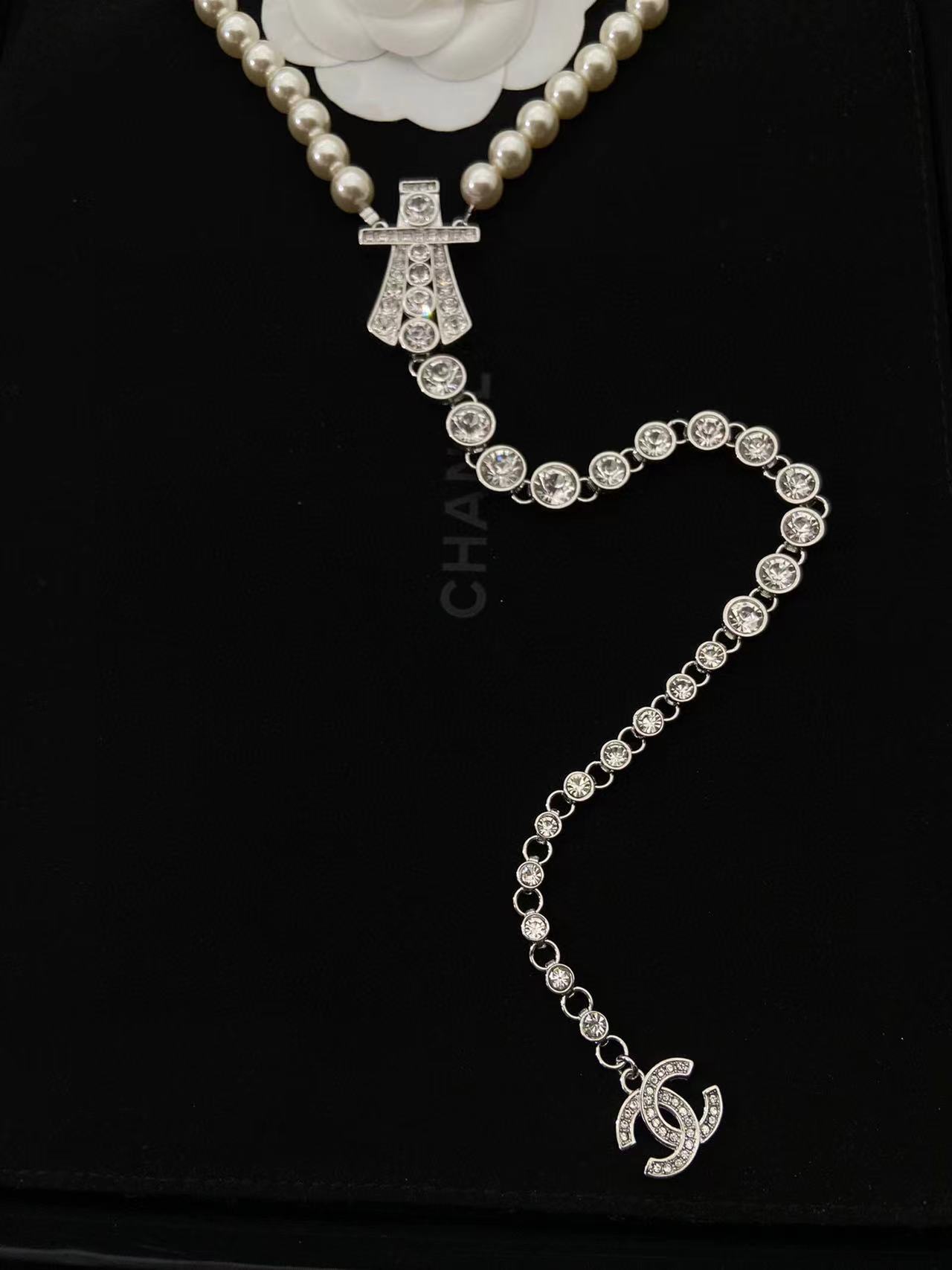 CHANE1 ラインストーンパールネックレス【 50%割引+送料無料】