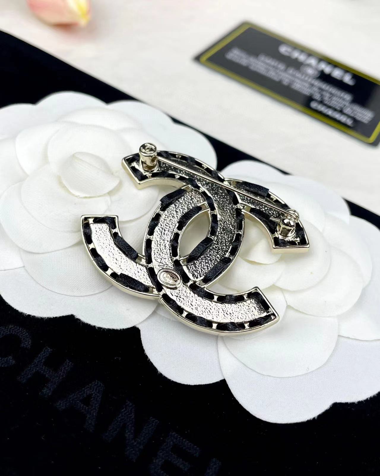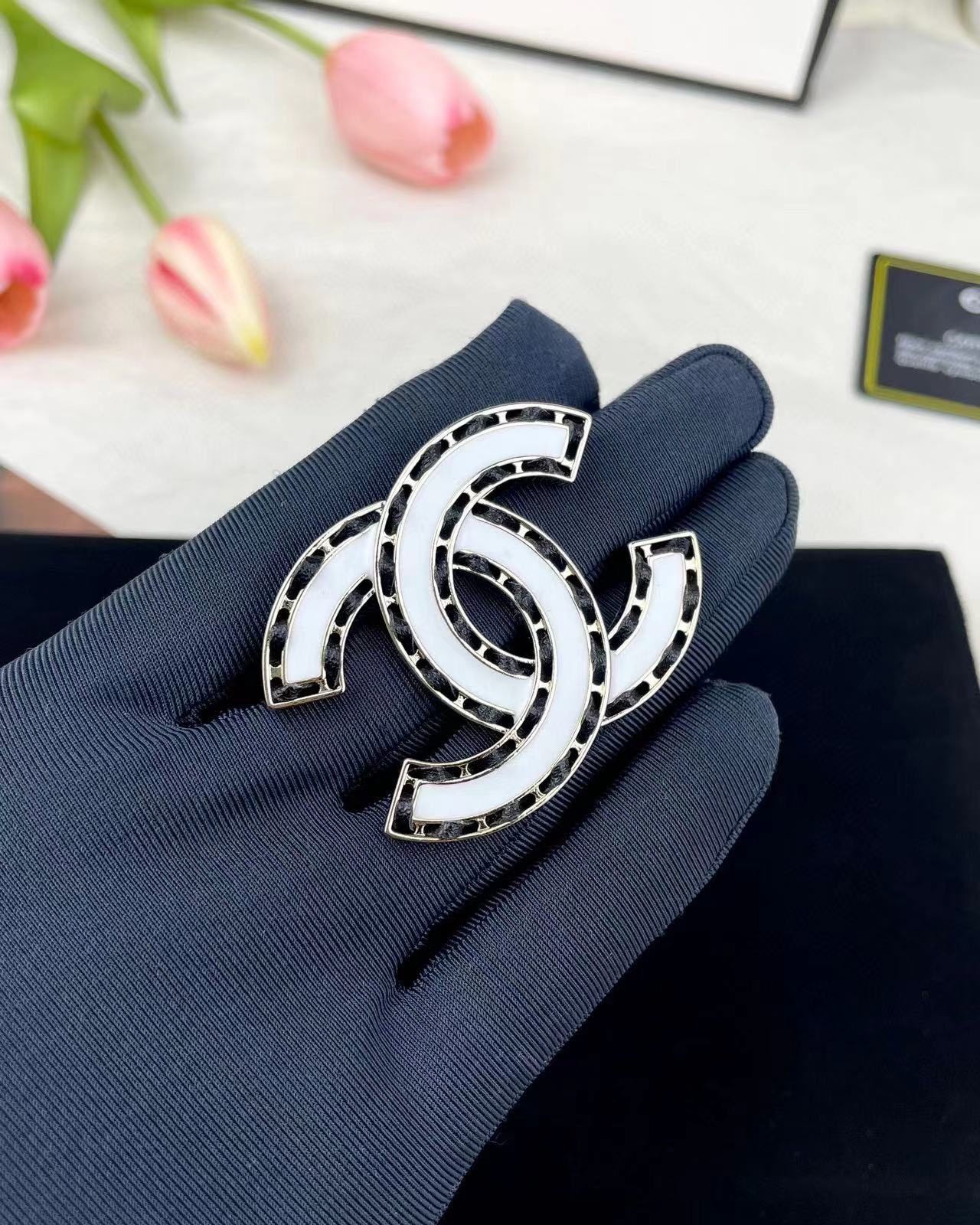 CHANE1 ダブルC ホワイトブローチ