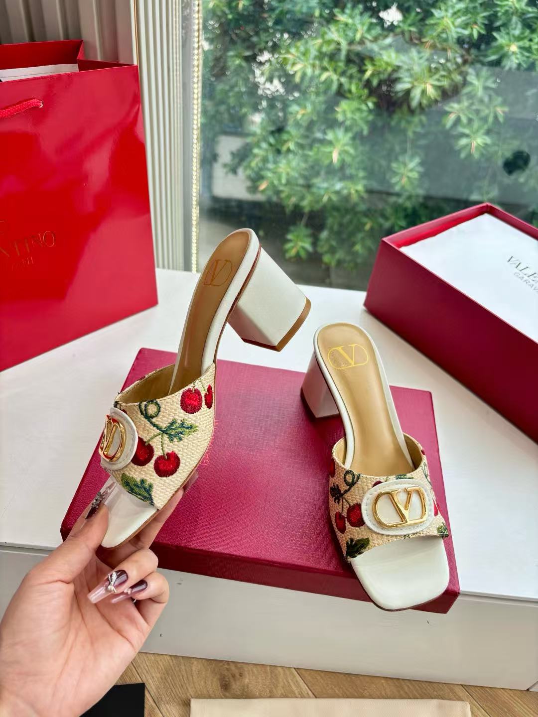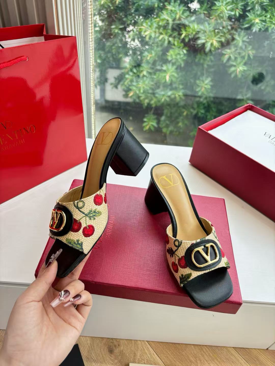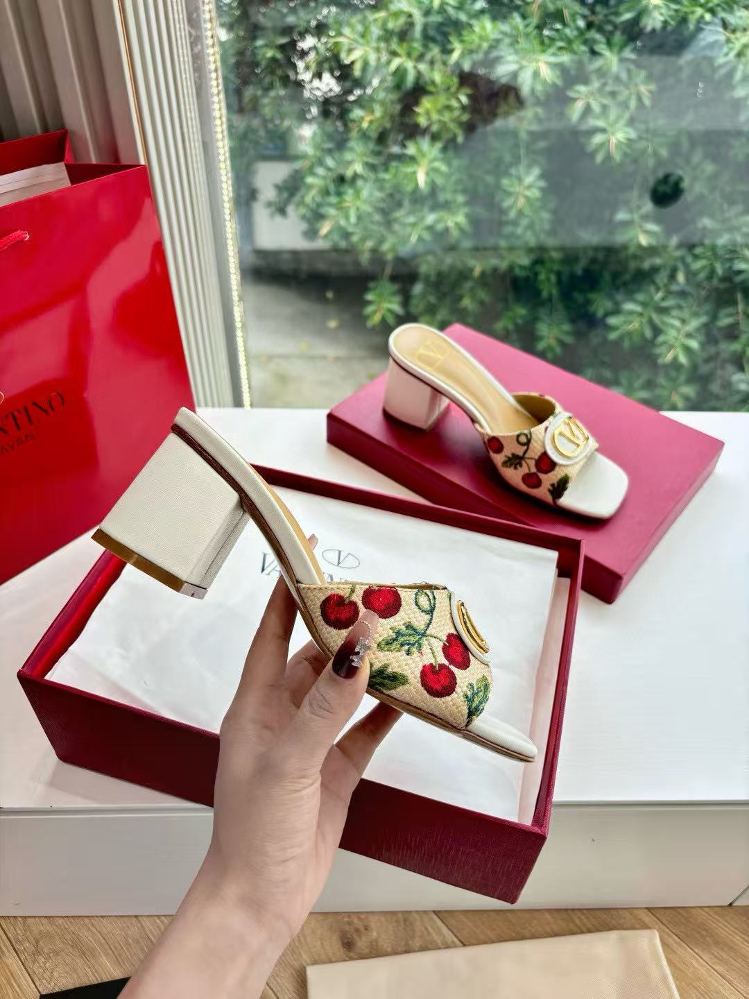 VALENT1NO 高品質チェリーメタルバックルサンダル【50%割引+送料無料】