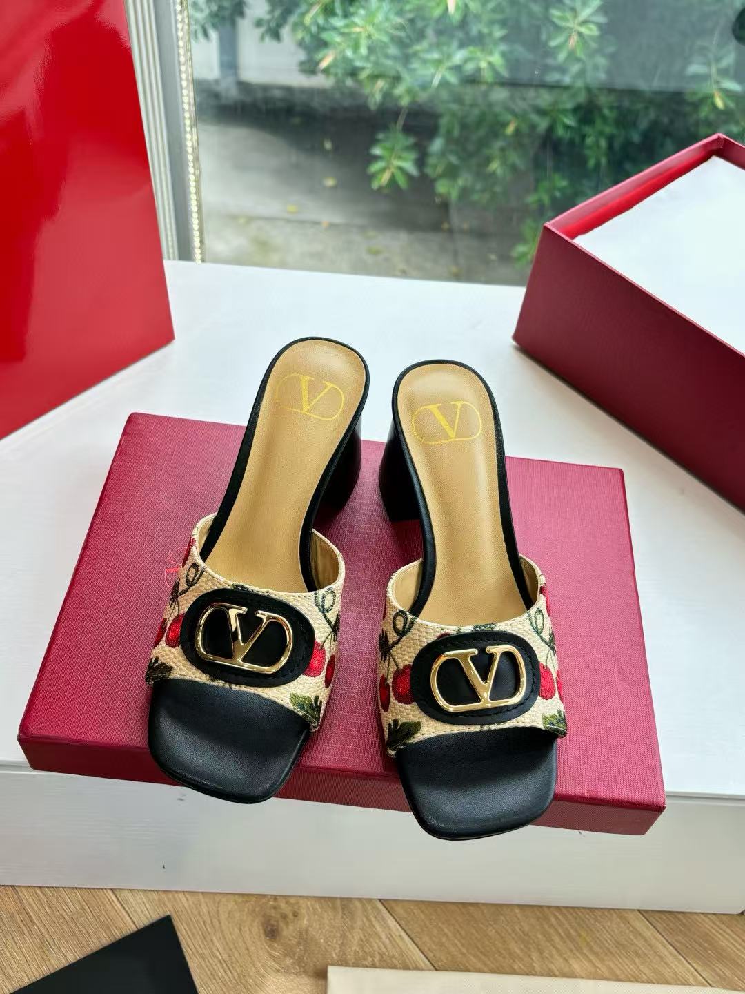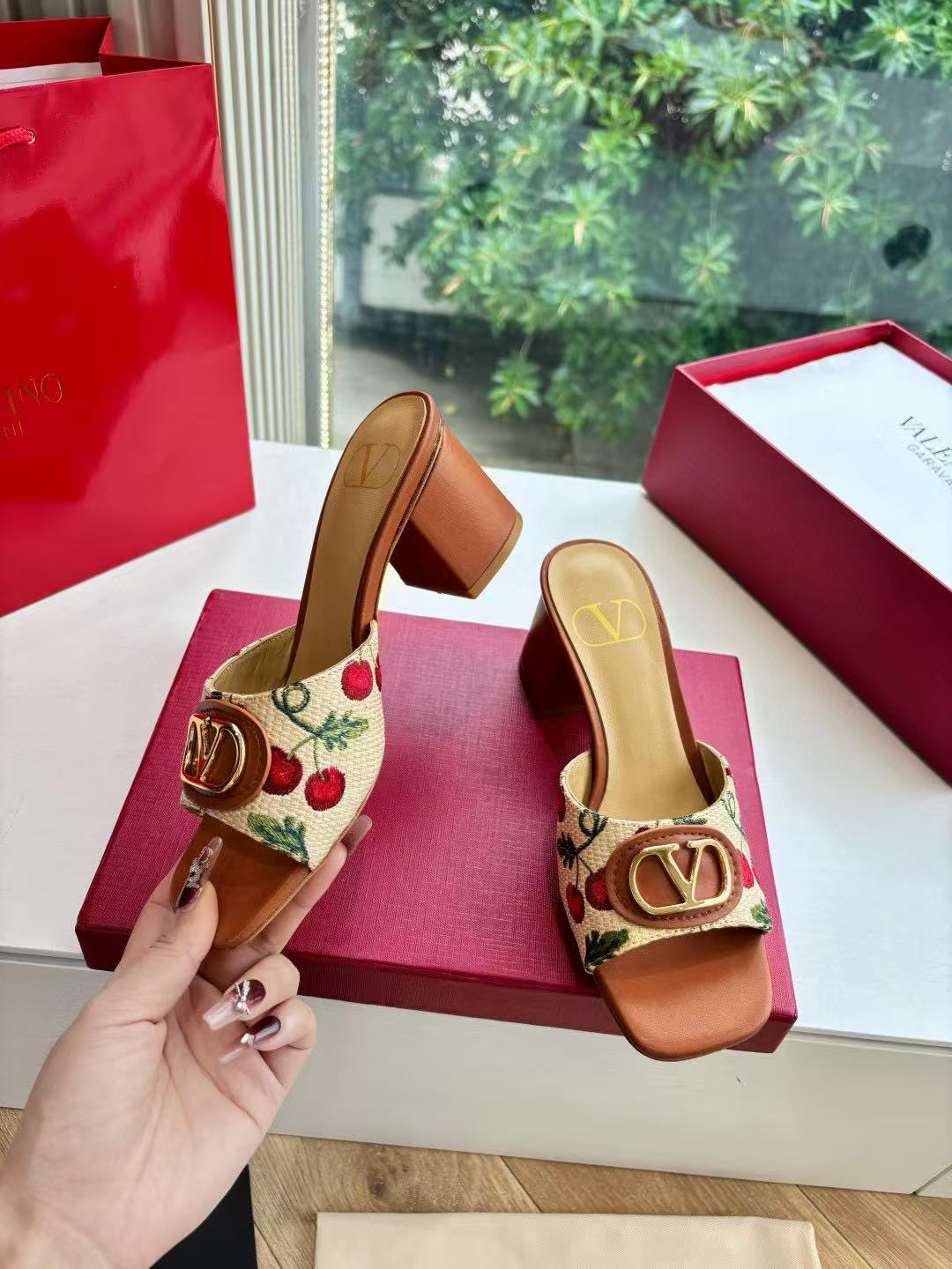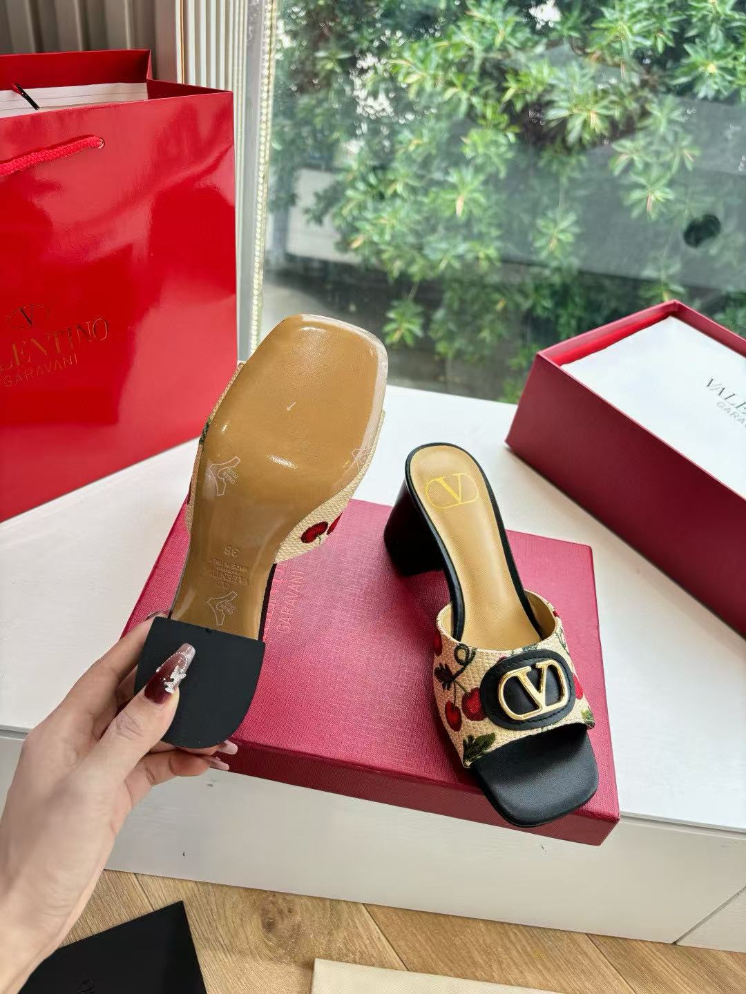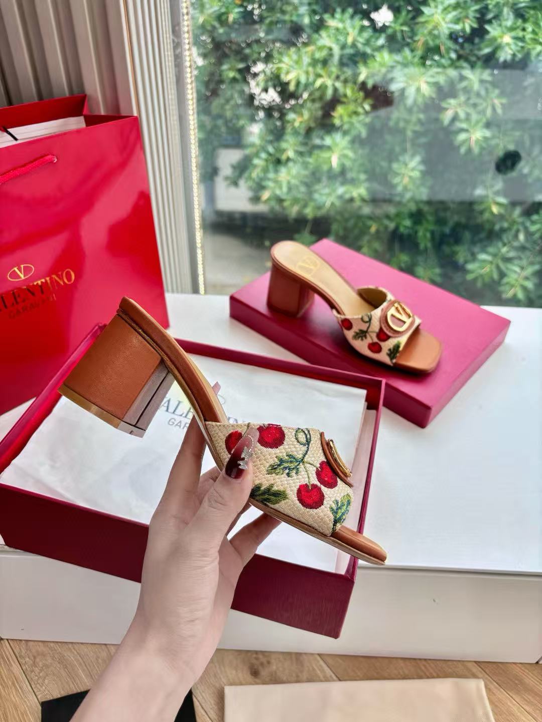 VALENT1NO 高品質チェリーメタルバックルサンダル【50%割引+送料無料】