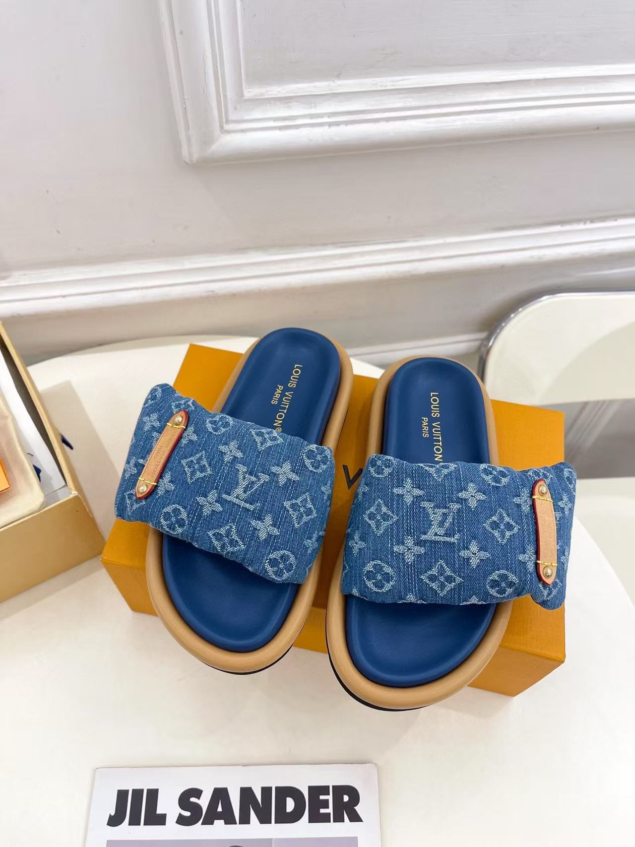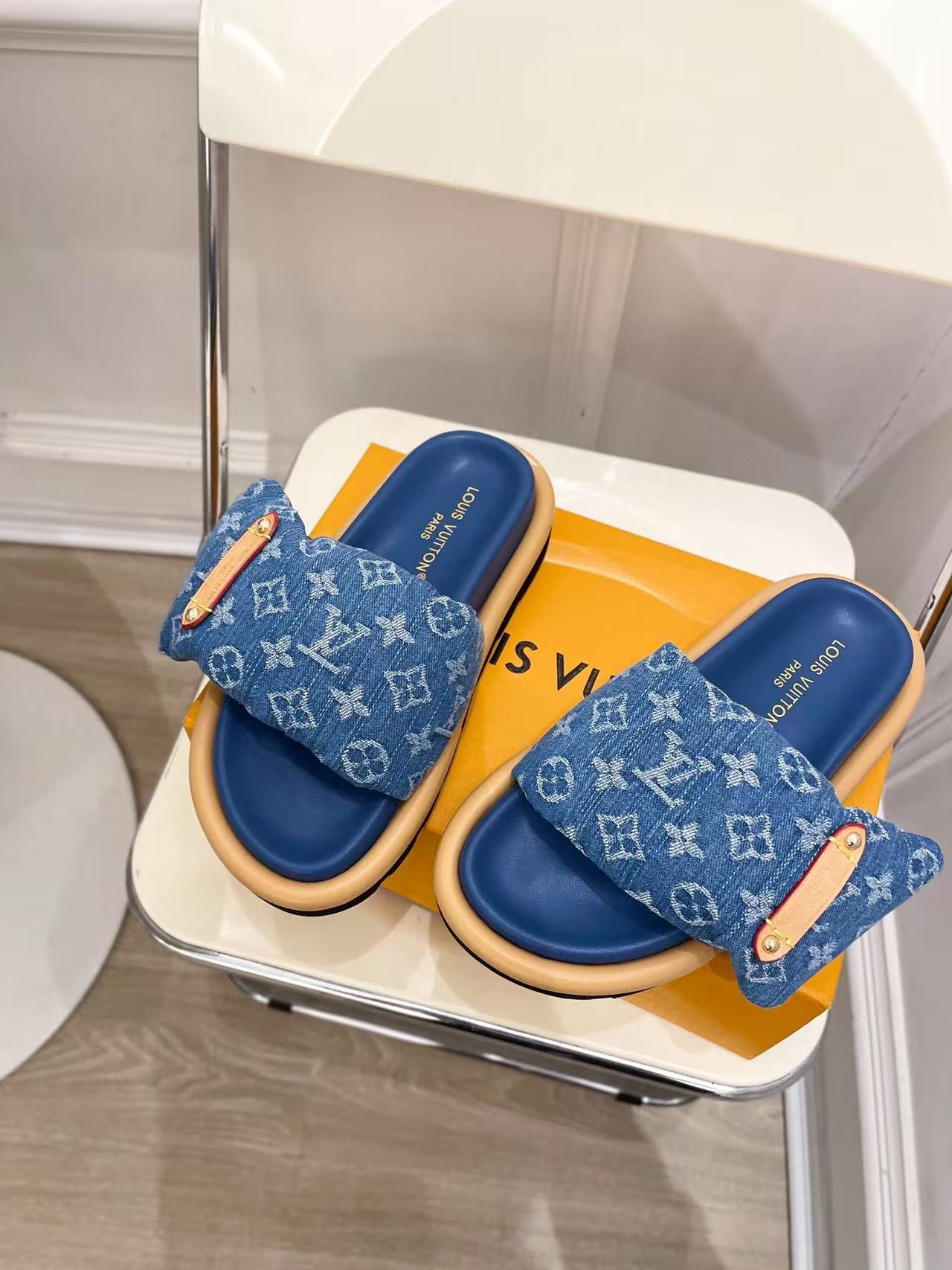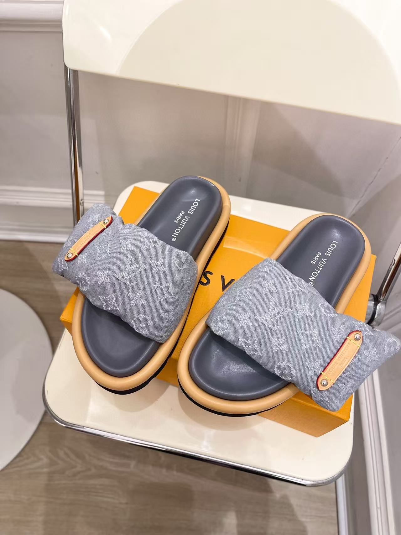 LVの高品質デニムダウンスリッパ【50%割引+送料無料】