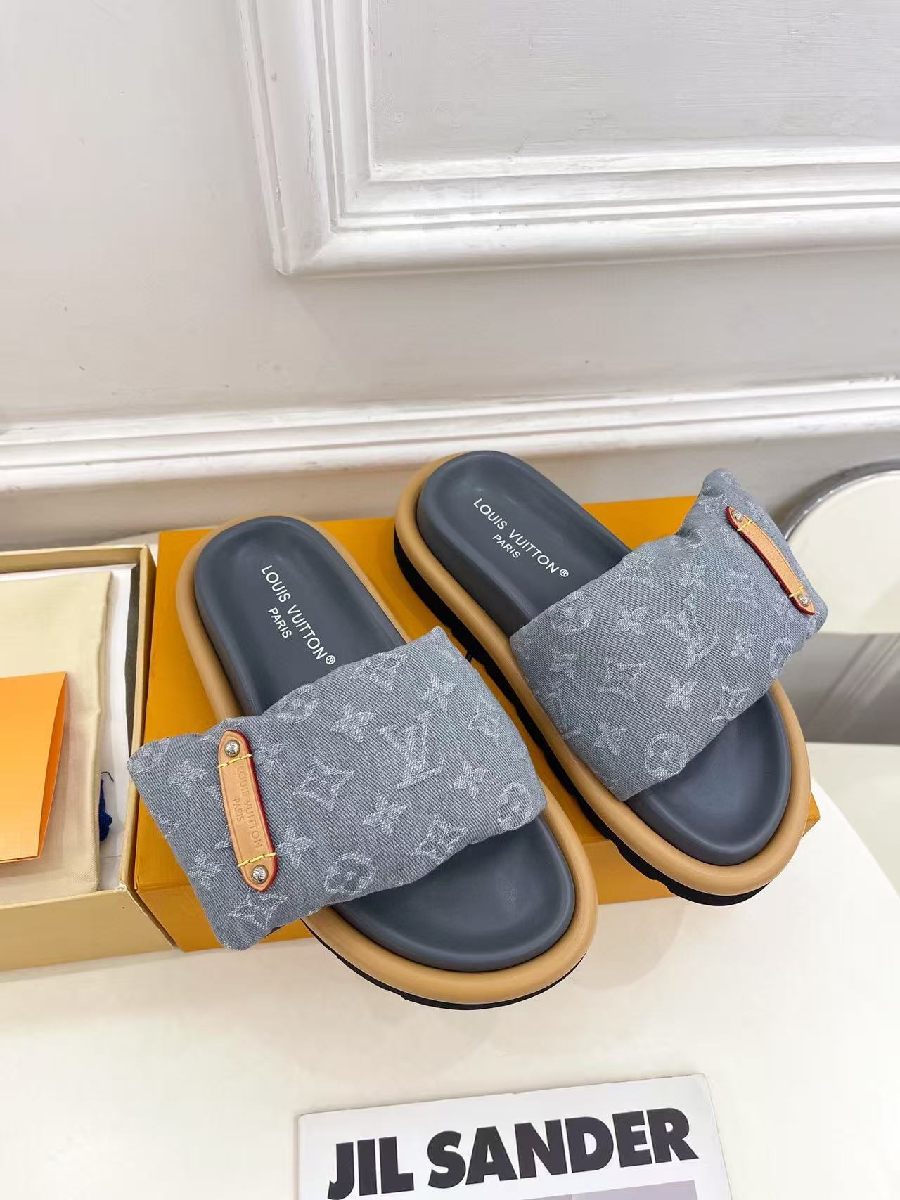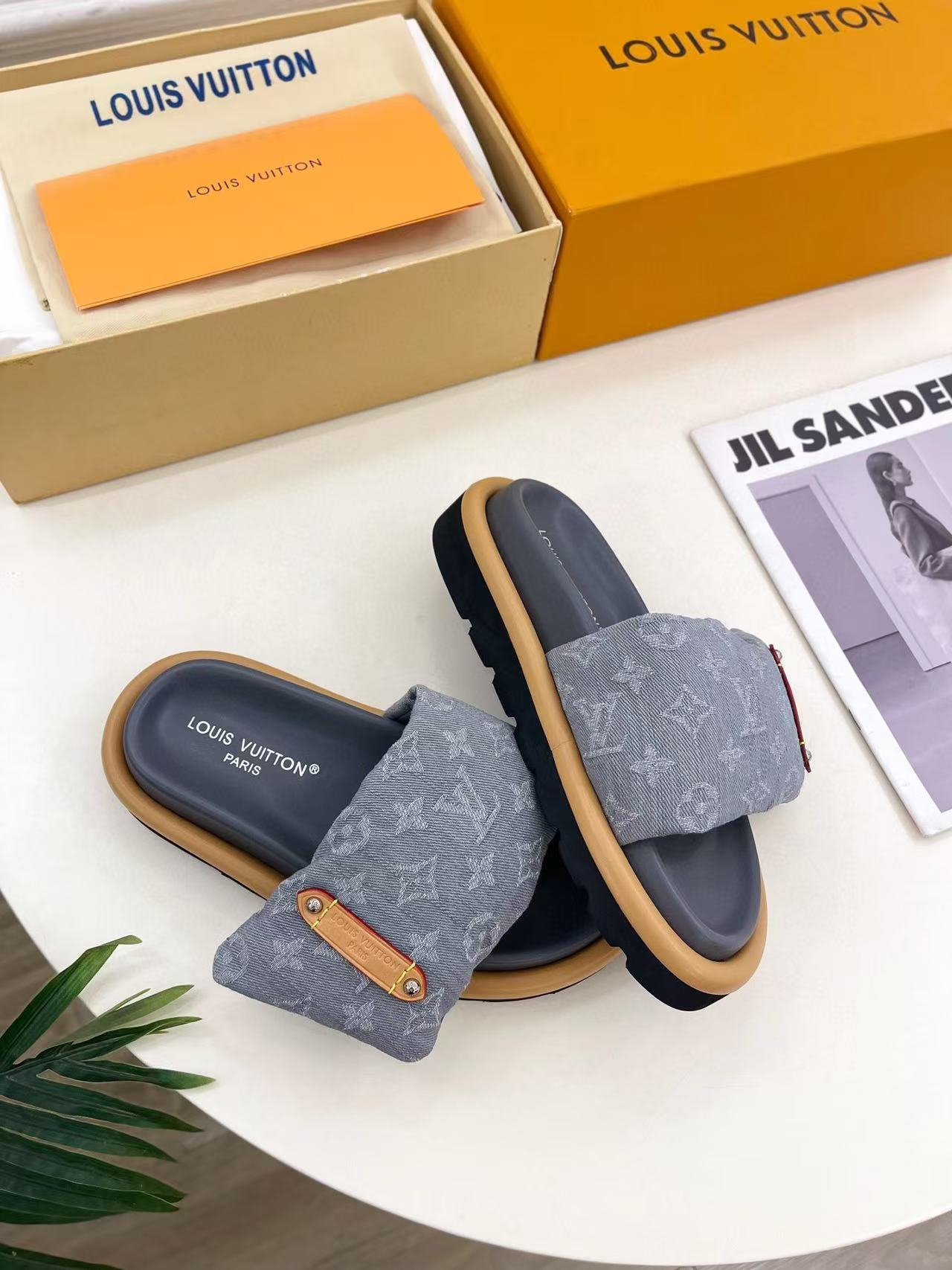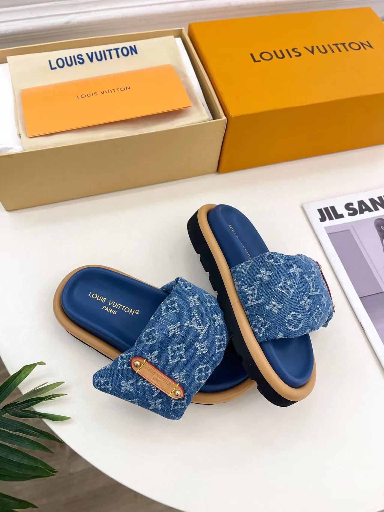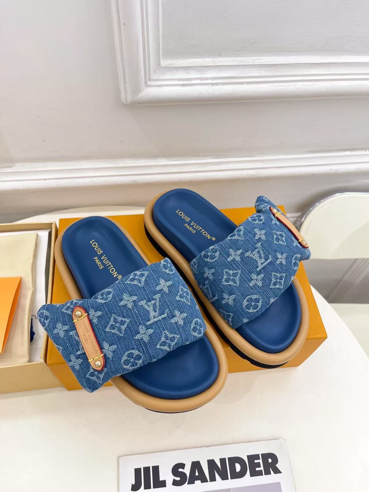 LVの高品質デニムダウンスリッパ【50%割引+送料無料】