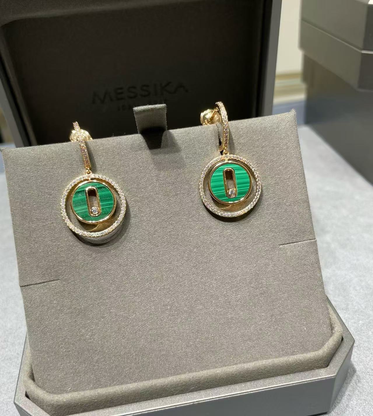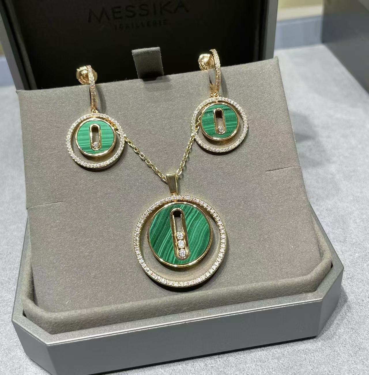 MESS1KA定番マラカイト ピアス+ネックレス 2点セット 【50%割引+送料無料】